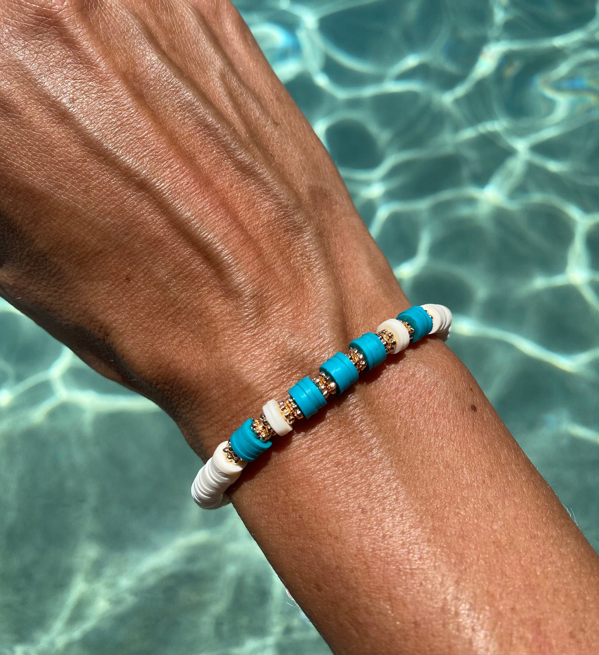 Coastal blue and white beaded stretch bracelet Romy