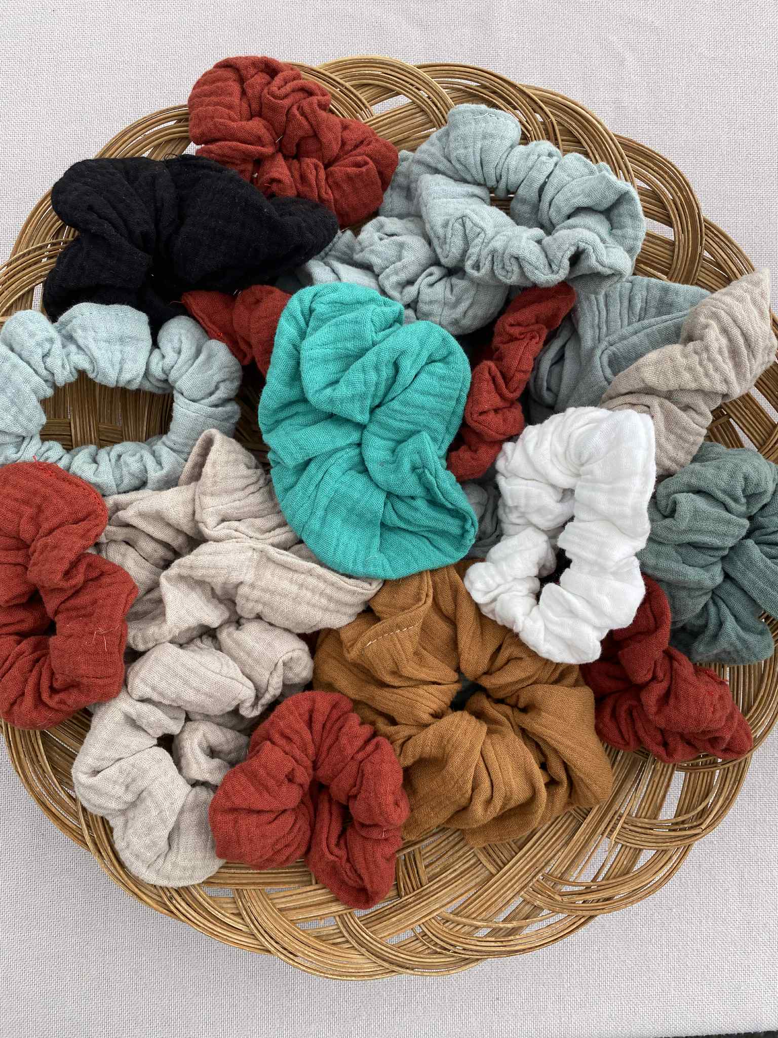 Complete your look with a Sunday Mood double cloth fabric scrunchy!
