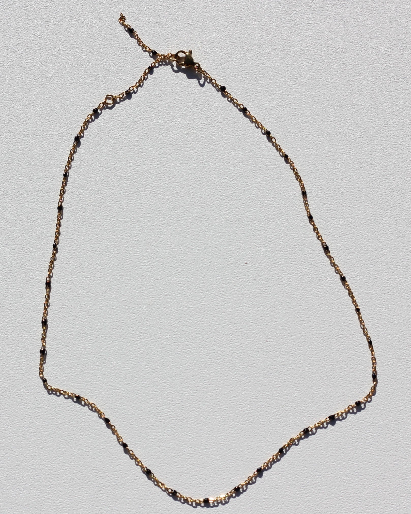 Golden black necklace Grace is a timeless piece that pairs with any outfit. Its simplicity creates a unique and eye-catching look that is sure to make a statement. You can wear it individually or layered with other fine necklaces.