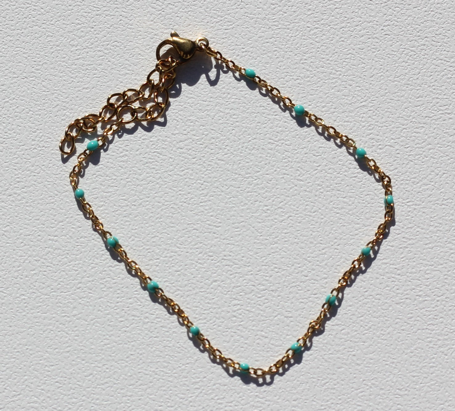 Golden light blue bracelet Grace is a timeless piece that pairs with any outfit. Its simplicity creates a unique and eye-catching look that is sure to make a statement. You can wear it individually or layered with other fine bracelets.