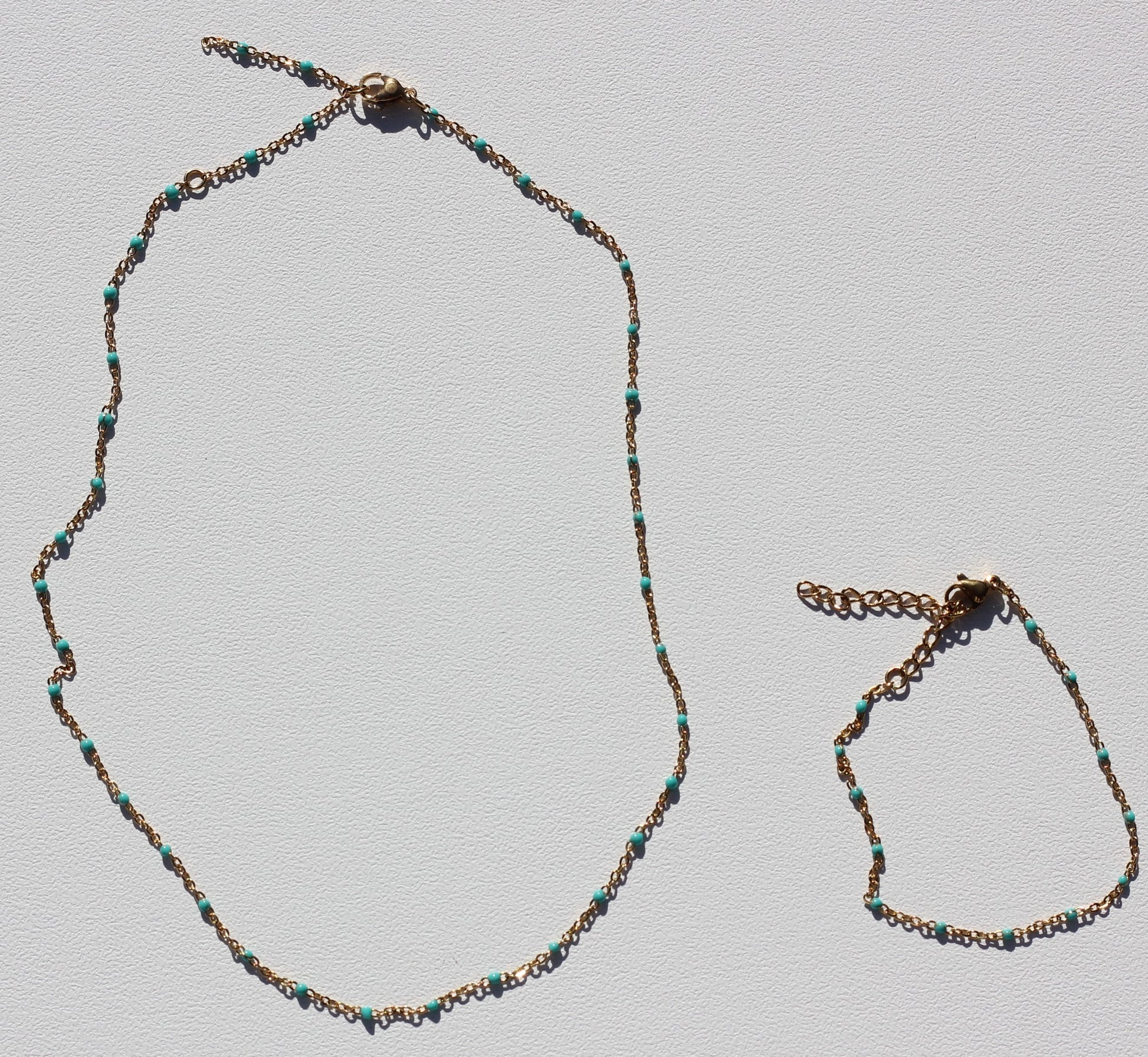 Golden light blue necklace Grace is a timeless piece that pairs with any outfit. Its simplicity creates a unique and eye-catching look that is sure to make a statement. You can wear it individually or layered with other fine necklaces.