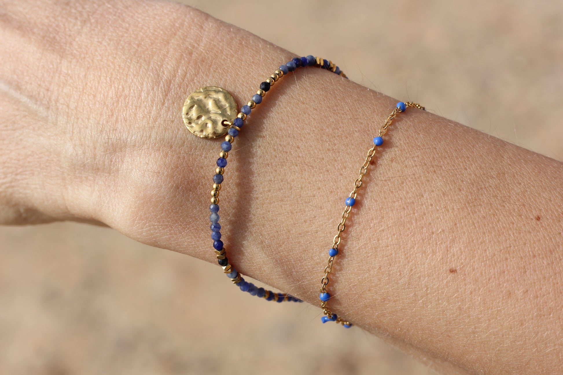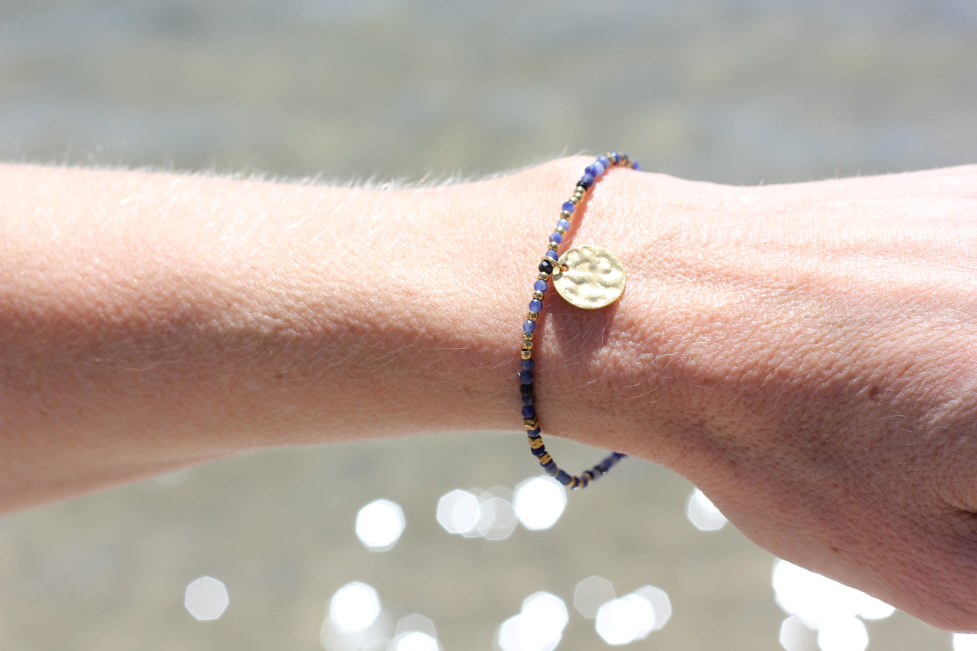 The “navy”, dark blue bracelet is deep blue beaded made for endless summer days. Whether you're dressing up for a special occasion or adding a touch of colour to your everyday style, this set is the perfect choice. It is made with stones believed to promote insight and mental enhancement.