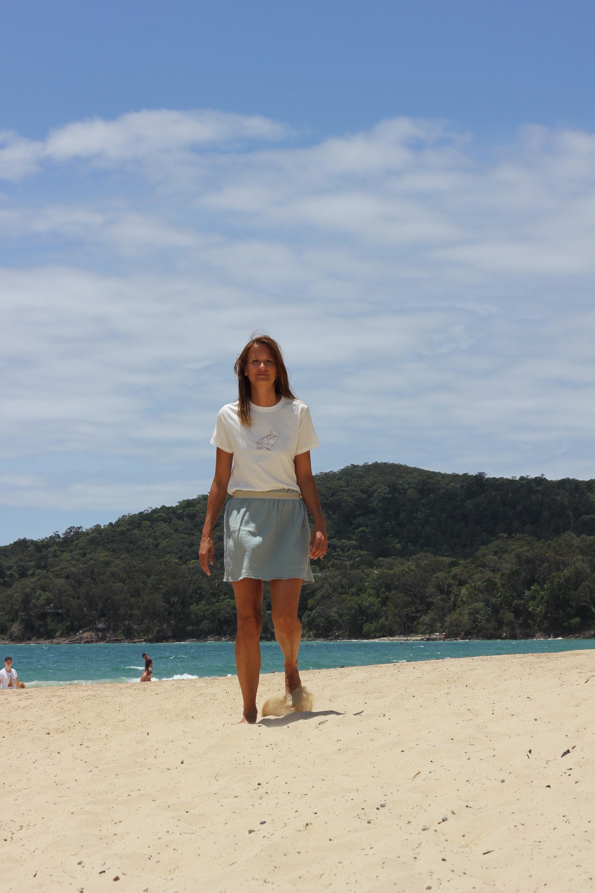 Embrace effortless coastal style with this handmade short skirt, crafted with care in a sewing workshop on the Sunshine Coast.