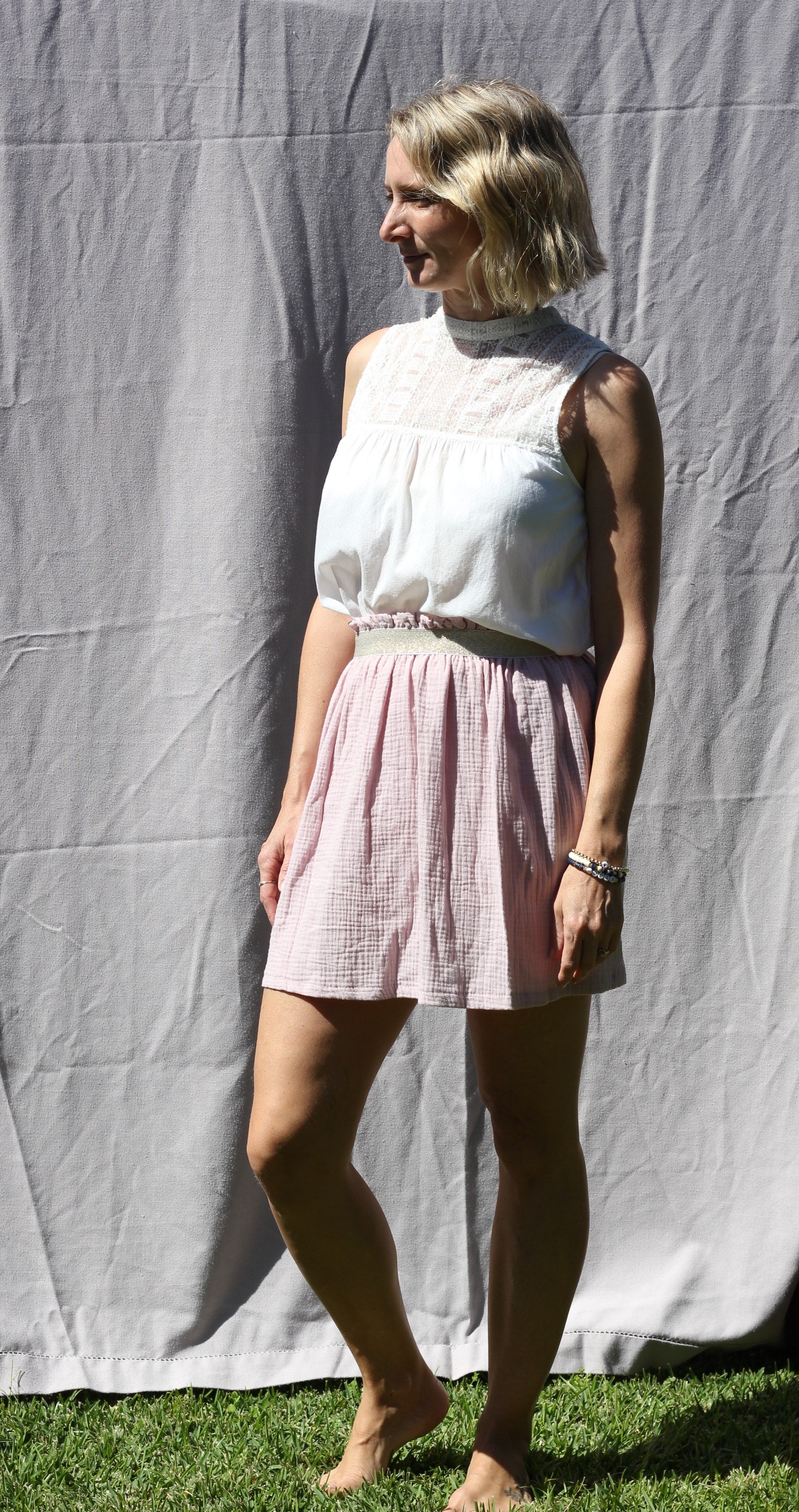 Embrace effortless coastal style with this handmade short skirt, crafted with care in a sewing workshop on the Sunshine Coast.
