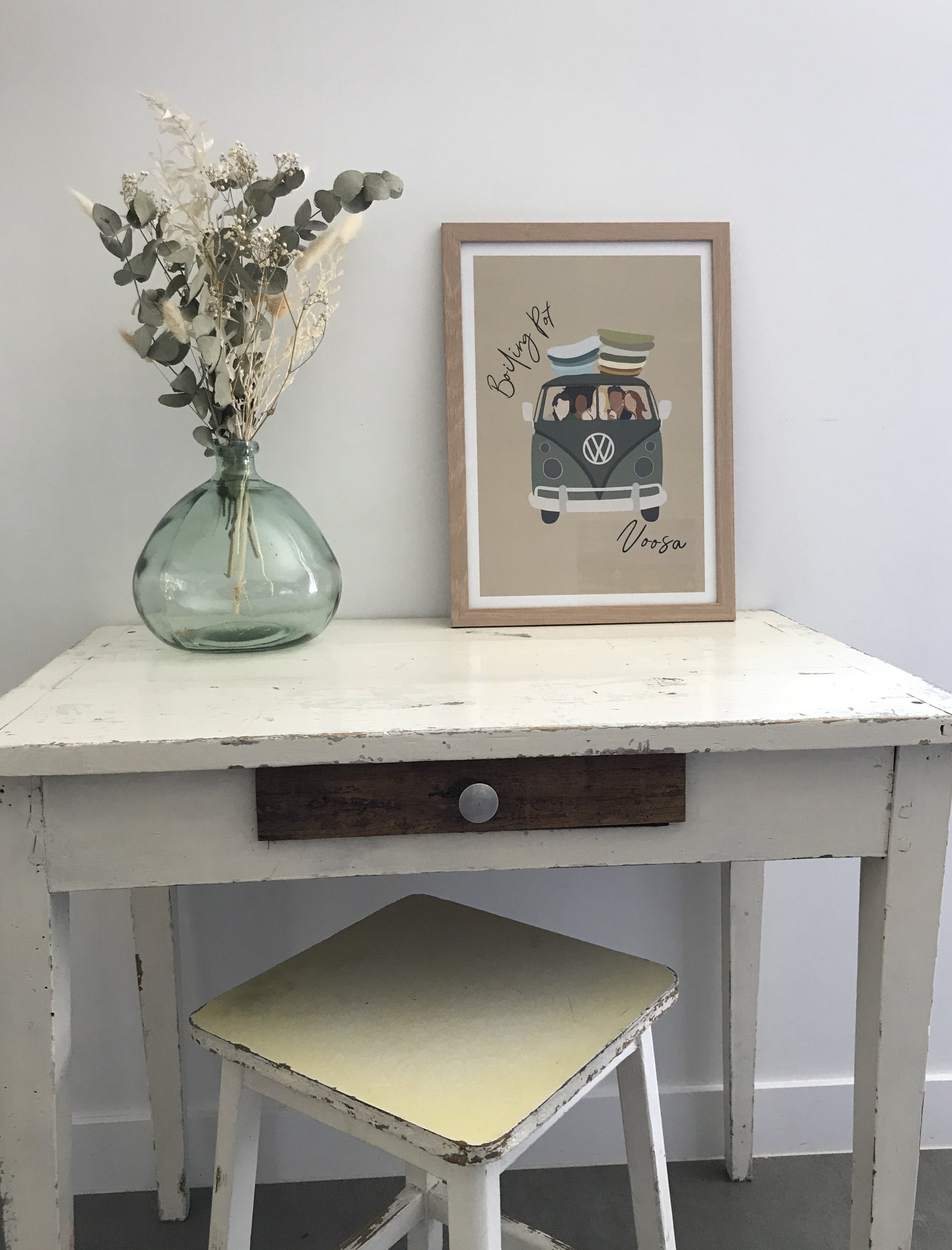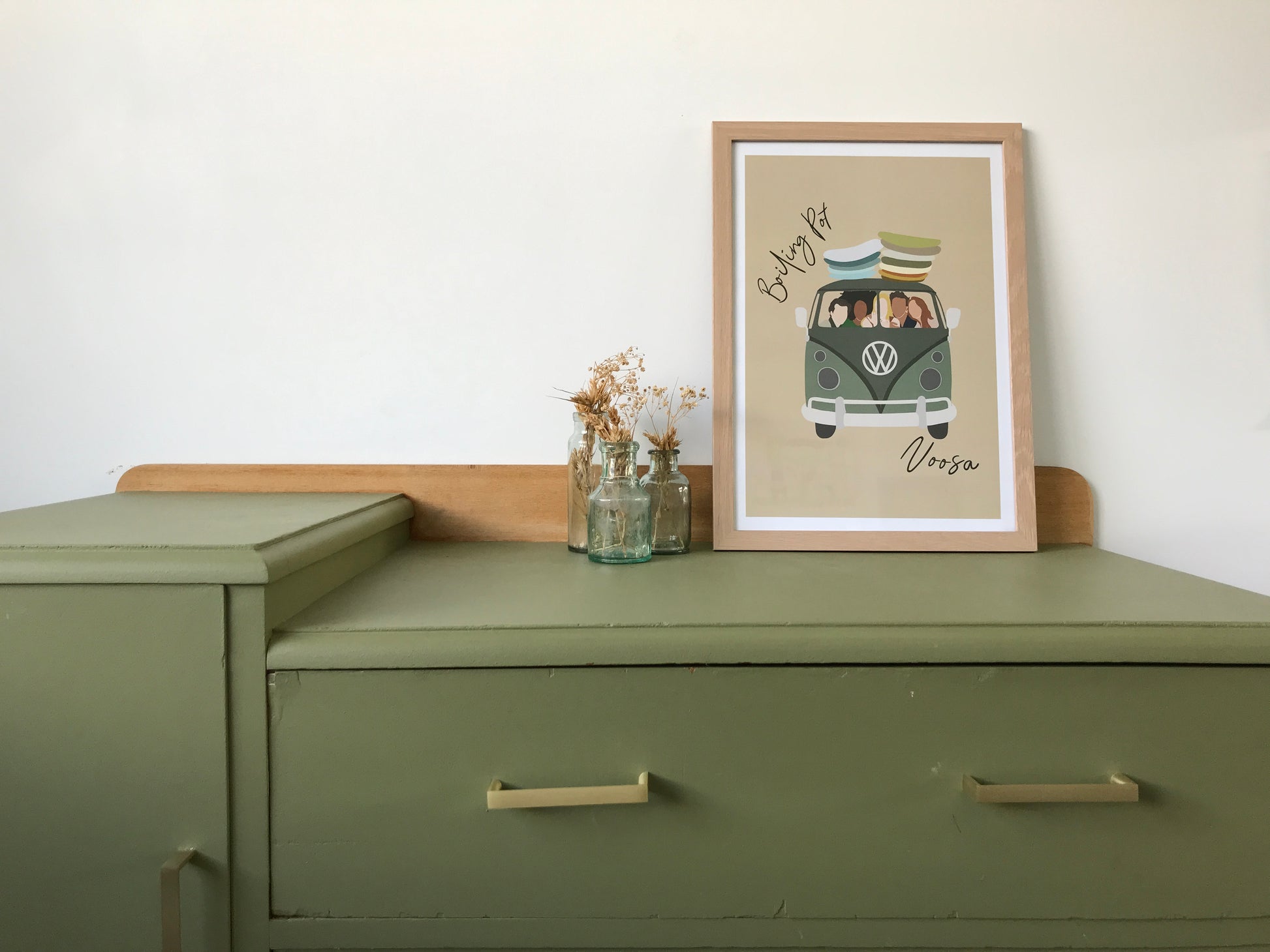 VW van with friends and surfboards, Boiling Point Noosa, ecofriendly poster A3